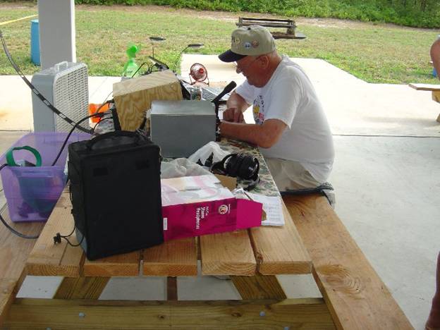 On Saturday the 28th of June 2008, the Holiday City Amateur Radio Club, W2HC, gathered together for its participation in the annual ARRL Field Day event. About 75% of the membership was in attendance along with a few of the member’s wives, guests and visitors. Antennas were the first to go up and with a coordinated effort they were up and running in no time. Then the radio stations with the tuners, cables etc were assembled and tested. Next was to establish power which was provided with a nice generator that went along almost un-noticed the entire day. Now what would Field Day be without high heat, humidity and the occasional rain shower! Yes we had it all. The club established two operating stations along with a GOTA station coached by Larry K2QDY. The stationed was operated by Bob Forshee KC2QMZ and his daughter Darlene, John Hann W2JWH and Dave Ottenburg WA2DJN. All in all the stations were in operation from 2:00PM to about 9:00PM on Saturday. I think everyone left at the end of the day exhausted but with a good feeling of accomplishment that if called upon we could provide our community with emergency communications if needed.